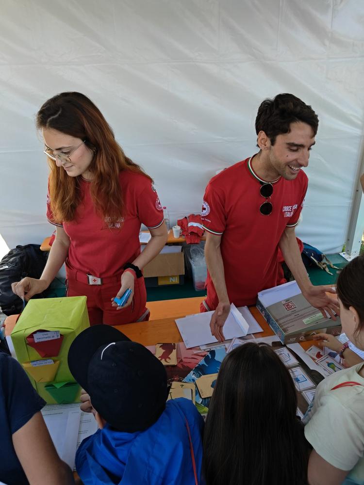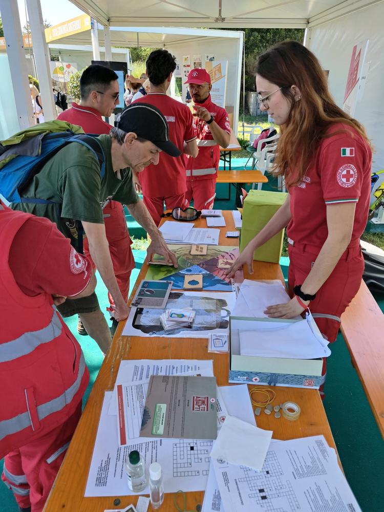 Particolare rilievo è stato dato ai temi dell’ambiente, della sostenibilità e della preparazione alle emergenze. Attraverso attività coinvolgenti come il “Semaforo ecologico”, un quiz dedicato ai comportamenti sostenibili, e l’attività “TimeToAdapt”, focalizzata sull’adattamento ai cambiamenti climatici e sulla consapevolezza ambientale, i Volontari hanno sensibilizzato il pubblico in maniera semplice ma efficace. A queste iniziative si sono affiancati strumenti educativi come il cruciverba ecologico e momenti pratici dedicati alla preparazione di uno zaino e di un piano d’emergenza familiare per affrontare eventuali situazioni di calamità.